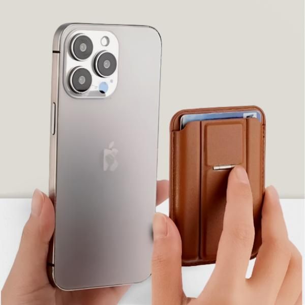 ? Magsafe Magnetic Card Holder PU Leather Folding Rotating Stand Strong Magnet Card Case, Holds 2-3 Cards Compatible with Magsafe mobiles
